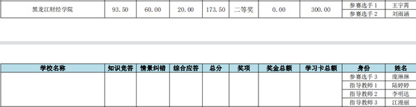 会计学院选派会计学专业庞琳琳、刘雨涵、王宇霄3名学生参赛。在陆婷婷、李明达、江漫丽三位老师的指导和带领下,同来自哈尔滨工业大学、东北林业大学、哈尔滨商业大学、黑龙江大学、齐齐哈尔大学等全省30多所本科院校,30多支队伍、100余名学生一较高下。通过4个小时的激烈角逐,最终我院学生取得了二等奖的好成绩。