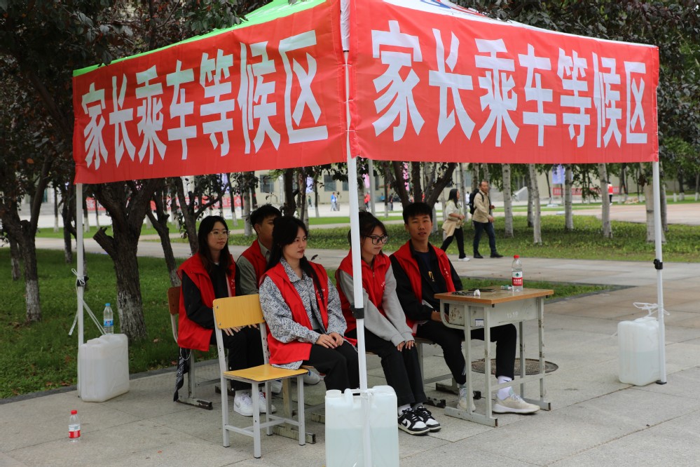 志愿者的一声欢迎、一个微笑、一次讲解,点点滴滴汇聚了他们的热情与期待,“红马甲”辛劳奔波的身影成为了一道靓丽的风景线。此外,全体新生辅导员24小时驻校,由10辆校车组成的接站车队不辞辛劳为新生“保驾护航”。