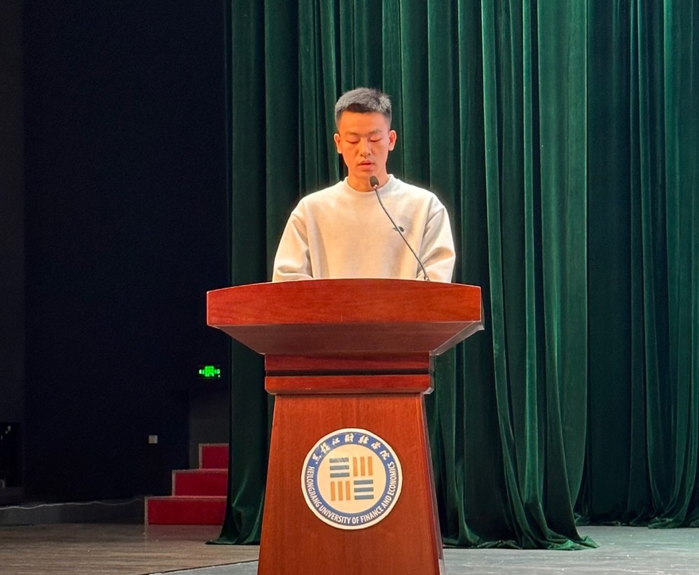 会计学院学生代表王浩宇做了表态发言。他表示,实习不仅仅是对自己个人能力的锻炼,更是对思想的洗礼。通过实习,将学校所学知识与社会实际接轨,在真实的工作环境和问题中提升职业素养,为自己的成长积累宝贵经验。同时,感谢学校领导对他们的支持与鼓励,感谢老师们的悉心教导。