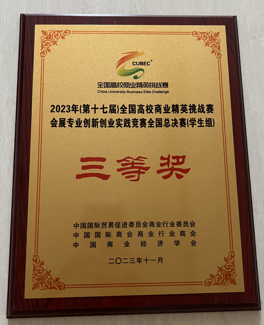 2023年11月11日,由中国国际贸易促进委员会商业行业委员会、中国国际商会商业行业商会和中国商业经济学会联合主办的2023年(新加坡)国际商务会展策划大赛中国地区选拔赛暨第十七届全国高校商业精英挑战赛会展创新创业实践竞赛全国总决赛落下帷幕。