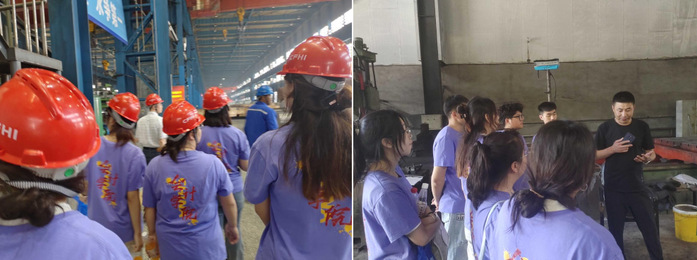 实践团成员参观了中国一重集团有限公司和齐齐哈尔富成重工机械制造有限公司的生产车间。这里不仅是钢铁与机械的交响乐章,更是技术创新与工匠精神的生动展现。在生产车间里,学生们见到了重型机械从原始材料到最终成品的整个蜕变过程。厚重的钢板在火焰的切割下被精准地分离出来,粗大的轴承则在高速旋转的机床上逐步成型,各种零部件在技术娴熟的工人手中巧妙地组装起来,最终汇聚成为一台台壮观的机械设备。学生们不禁感叹于现代制造技术的精妙与高效,同时也对工人们的精湛技艺和辛勤付出表示由衷地敬佩。在参观过程中,实践团成员们得到了企业工作人员的热情接待和详细讲解。他们耐心地向学生们介绍了生产线的布局、工艺流程、设备性能以及技术创新点等方面的内容。通过工作人员的讲解,学生们不仅对企业的产品种类、技术特点及市场应用有了更加全面和深入地了解,还深刻认识到了技术创新在推动产业升级和提升企业竞争力方面的重要作用。