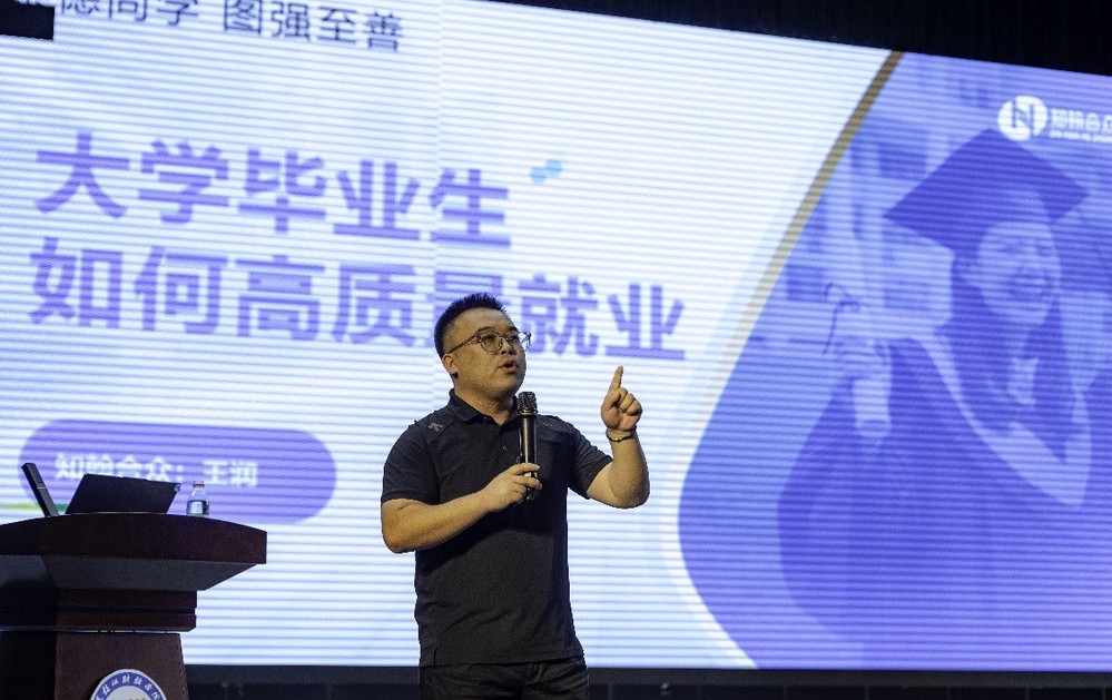 黑龙江省就业指导行业著名申论.面试讲师(知翰师训中心主任)王润老师发言,与同学们分享了如何提高就业质量,如何提前做好职业规划以及选择企业,号召同学们要不断提升自身综合素质,积极参加实践活动,积累丰富经验。