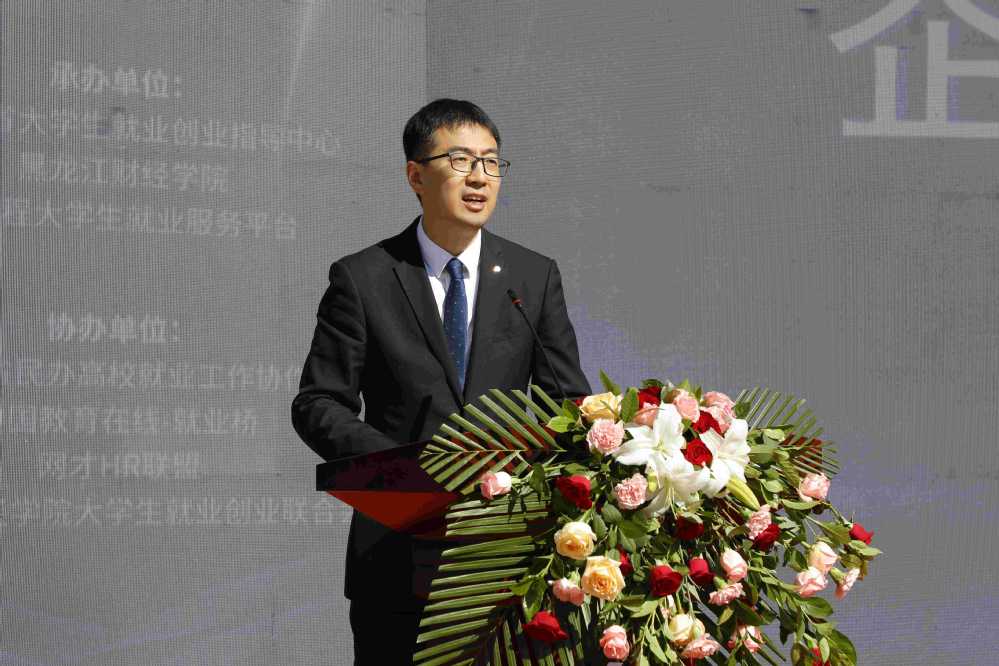 王敏代表学校领导班子及全体师生,对长期以来关心与支持学校各项事业发展的各位企业代表表示热烈的欢迎和衷心的感谢。她指出,在25年的建设发展历程中,学校贯彻党的教育方针,坚持社会主义办学方向,落实立德树人根本任务,立足“地方性、应用型、开放式”的办学定位,坚持“厚植根基,创新机制,提升内涵,凝炼特色,开放发展”的办学理念,聚焦四新建设和商科教育,优化学科专业布局,致力于以社会需求为导向,加强学生实践能力的培养,深入实施专业对接行业、课程对接岗位、培养过程对接生产过程,深化产教融合、协同育人,实现应用型人才培养与产业链、服务链无缝衔接的人才培养模式,形成了财商类、应用型人才的培育优势和特色,成为一所立足区域和行业,面向全国、为经济社会发展培养应用型人才的地方性应用型本科院校。她强调,校企合作、协同育人是提高人才培养质量、促进毕业生更高质量充分就业的关键所在。学校珍视校企合作情谊,愿意与各企业一道,深挖校企合作资源、共商人才培养路径、共享育人成果,携手同行,为促进经济社会发展,贡献智力支持和人才支撑。她指出,今天的供需见面会,是毕业生零距离接触企业的平台,也是毕业生职业生涯的起点。希望同学们准确把握求职定位,与企业代表充分交流,勇敢自荐,把求职当作一次历练提升,展现龙财学子的自信与专业素养。要坚定理想信念,扛着责任担当,时刻铭记“崇德尚学、图强至善”的龙财校训,秉承“忠诚、敬业、合作、卓越”的龙财精神,展现龙财人“乐观、宽容、理智、激情”的情怀,用奋斗续写人生华章,不负岗位的选择,不负家庭和母校的期待。