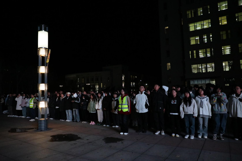 本次演练模拟夜间尚学楼突发火灾的情况下进行应急疏散逃生演练、消防技能等两部分组成。19:00随着总指挥副校长王玉峰下达的演练开始命令,演练正式开始。工作人员布置火场烟雾,鸣响火警警报。学校相关部门立即启动应急处置预案。在尚学楼上自习的同学在各二级学院辅导员与疏导员的指导下捂住口鼻、弯腰低头、小步快走,根据现场疏散标志,快速撤离火灾现场,有序前往安全区域,在短时间内抵达星辉广场空旷地带。整个演练过程以现场“对话式”模拟应急响应,做到措施有力,指挥高效,演练场景真实、效果突出。