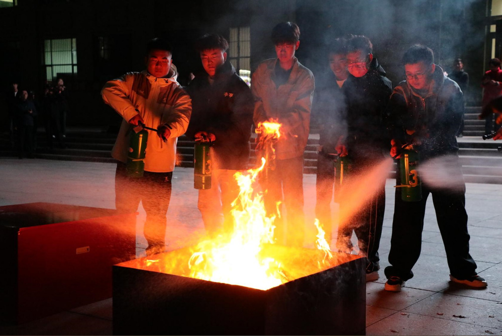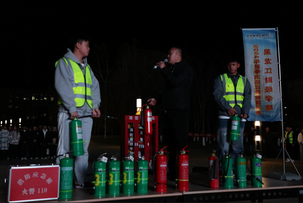 随后,保卫处苗志弘就尚学楼发生火灾时如何正确逃生自救,以及如何使用灭火器、消火栓等进行详细讲解,并现场指导学生进行灭火实操。通过知识宣讲和实践操作相结合,让学生将消防安全知识入脑又入心。