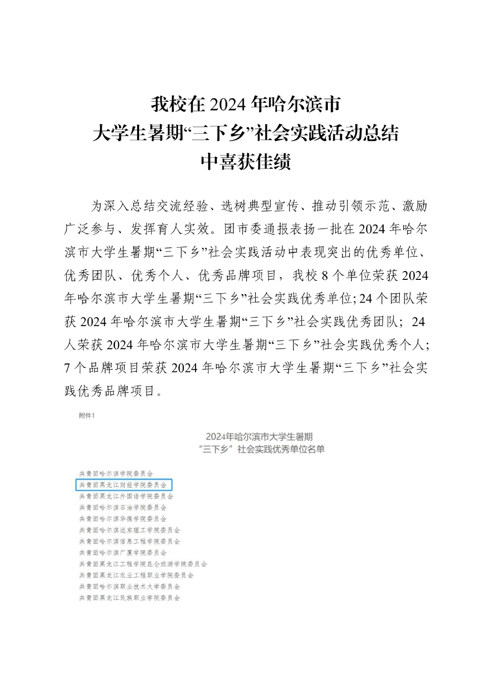 【学院新闻】我校在2024年哈尔滨市大学生暑期“三下乡”社会实践活动总结中喜获佳绩