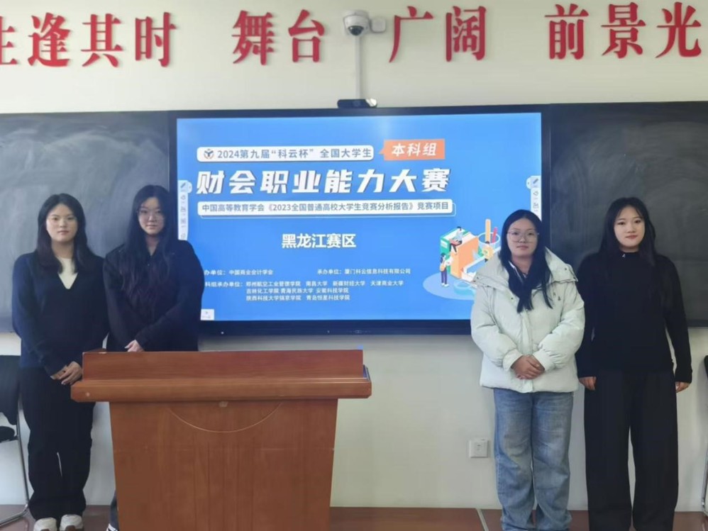 经过激烈的竞争,我校会计学院皮雨鑫、袁媛老师带领的会计学专业学生赵珊珊、徐冰雪、徐珩、赵雨霏4位同学,以及会计学院吕杨杨、寇冠老师带领的会计学专业学生冯琬婷、闫东琪、郑淑梨、郭焱绮4位同学,荣获大赛本科组黑龙江省三等奖。