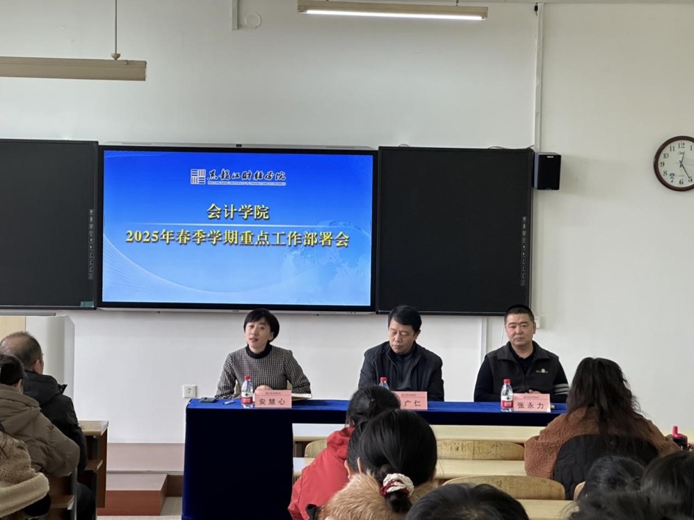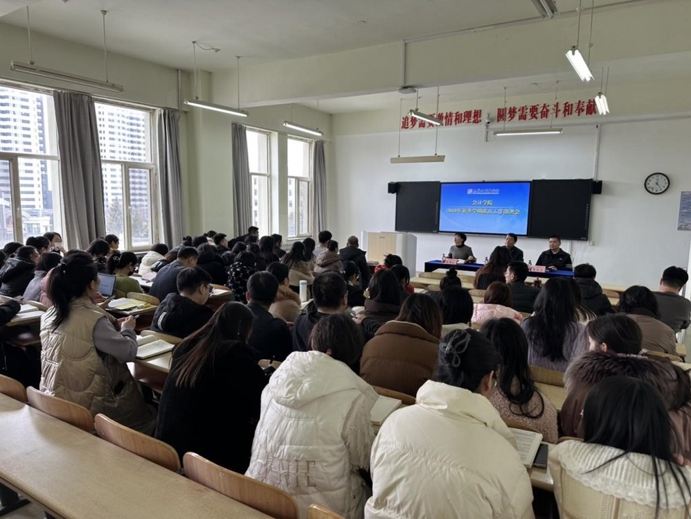 为落实学校2025年工作要点、推动学院建设高质量发展,会计学院紧扣学院发展现状,于3月1日中午在尚学楼324室召开会计学院2025年重点工作部署会议,全面梳理并详尽部署了本年度的党建工作、教学科研工作以及师资队伍建设等多项核心任务。会议由副院长安慧心主持,院长吕广仁和党总支书记张永力讲话,全体教师和辅导员参加。